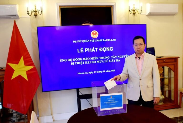 Cộng đồng người Việt Nam tại Ba Lan trao tặng tiền hỗ trợ đồng bào chịu thiệt hại bởi cơn bão số 10 và 11